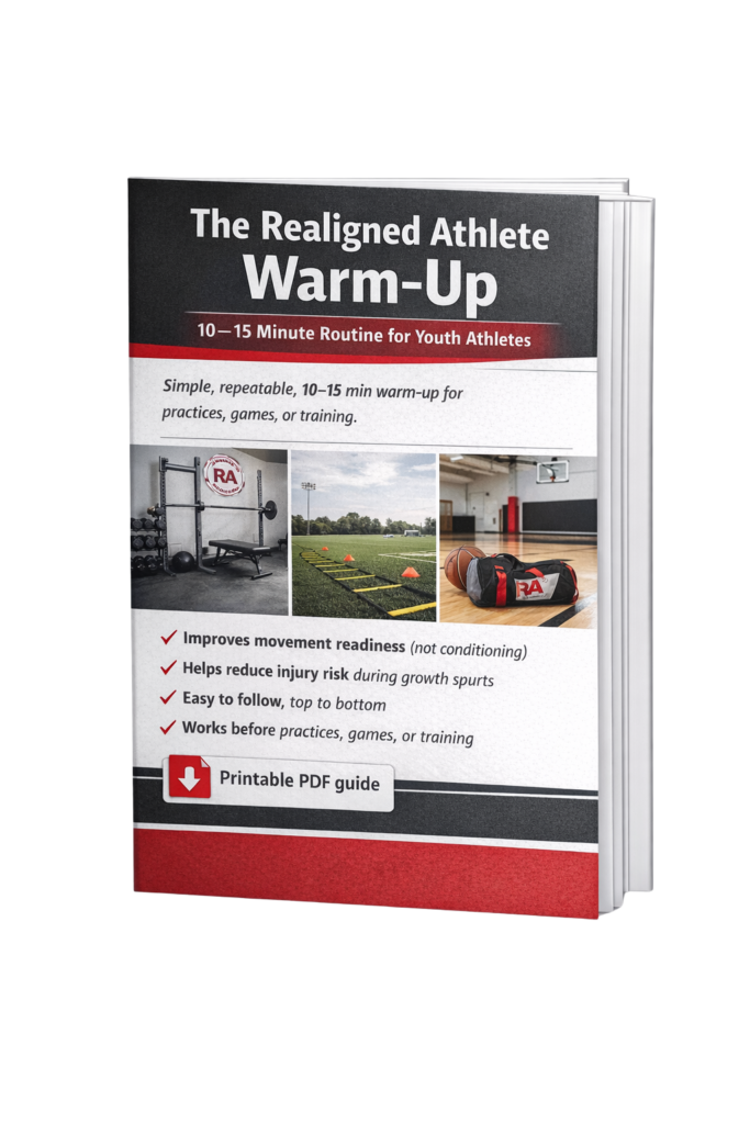 If you’re ever ready to go beyond warm-ups, you’ll be introduced to our Realigned Athletics Strength Foundations Program, a structured 12-week system for youth athletes.